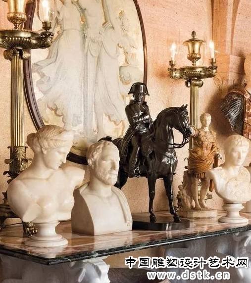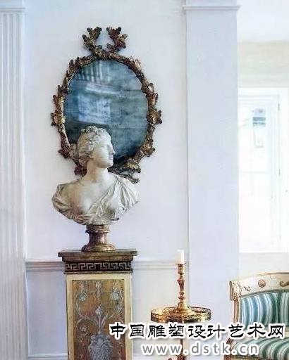 ▲典雅的复古范,从一个塑像开始,围绕塑像你可以搭配任何你喜欢的复古配饰,壁画、镜子、烛台都是很容易出效果的。