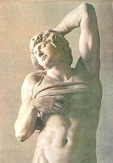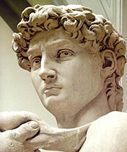 米开朗基罗 作者:卢贤生 来源:中国雕塑设计艺术网 卢贤生 米开朗基罗1475-1564),意大利文艺复兴时期伟大的绘画家、雕塑家、建筑师和诗人。他和达芬奇、拉斐尔并称文艺复兴三杰的艺术巨匠。他的艺术不像达芬奇那样博大精深,充满科学的精神和哲理的思考,也不同于拉斐尔的典雅和谐,而是以雄浑、豪放、宏伟、刚健和充满激情著称。米开朗基罗代表了欧洲文艺复兴时期雕塑艺术的最高峰,“神圣而痛苦的生涯”是法国现代著名作家罗曼·罗兰对米开朗琪罗一生的高度概括,并用诗一样的语言把他比作文艺复兴时期“巨星”:“他之于意大利,无异是整个民族天才的化身。他的生涯的终局,已是文艺复兴时期遗下的最后的巨星。他是文艺 复兴时期的代表,整个世纪光荣都是属于他的。不独是艺术家认为他是一个超自然的人,就是王公大臣也在他的威望之前低头”。他在艺术作品中倾注了自己满腔的激情。并以宏伟壮丽的形式表现出来的,气魄宏大,充满了无穷的力量。他所塑造的英雄既是理想的象征又是现实的反应。这些都使他的艺术创作成为西方美术史上一座难以逾越的高峰。 米开朗基罗1475年3月6日生于佛罗伦萨附近的卡普莱斯。他13 岁时进入佛罗伦萨画家基尔兰达约的工作室学艺,显露出非凡的艺术才华。后转入圣马可修道院的美第奇学院作学徒。1496年,米开朗基罗来到罗马,创作了第一批代表作《酒神巴库斯》和《哀悼基督》等。 他在1498年~1501年完成的作品《哀悼基督》中用圣母青春形象寄托人文主义关于人性崇高和不朽的理想。大胆的艺术构思和巧妙的构图,精致的细部刻画,相得益彰,作品震惊了整个罗马艺坛,大家万没有想到这件作品是出自一个二十来岁的年青人之手。为了消除人们的猜疑,米开朗琪罗不得不在圣母衣带上刻下自己的名字来证 米开朗基罗 实作品出自他手。这是他在任何别的作品上,都未曾作过的事。缘由是,有一天他到展品的地方,有人问道是谁创作了这件作品时,有人说:“我们米兰的戈波。”米开朗基罗一语未发,但他觉得这太不公平了,因此,一天夜里他拿了灯光和凿刀潜入圣彼得教堂,把名字刻在圣母的衣带上。《哀悼基督》云石雕像,高175厘米,现收藏于罗马梵蒂冈圣彼得大教堂。 这件作品是米开朗基罗应法国红衣大主教罗昂·圣戴尼的请求,为圣彼得大教堂所作。 作品的题材取自圣经故事中基督耶酥被犹太总督抓住并钉死在十字架上之后,圣母玛丽亚抱着基督的身体痛哭的情景。 这个基本情节给了米开朗基罗发挥的余地。他在构思时对作品中的人物充满了真挚的感情。雕像中,死去的基督脸上没有任何痛苦的表 情,横躺在圣母玛丽亚的两膝之间,右手下垂,头向后仰,身体如体操运动员一般细长,腰部弯曲,表现出死亡的虚弱和无力;在与圣母厚重的斗蓬与长袍衣裙的对比中,基督的完美身躯显得既突出又脆弱。它让人们感受到一种美好的品德受到摧残之后所留下的遗憾、和悲痛。美丽俊俏的圣母无力地低着头,眼险低垂,显示出楚楚动人的悲哀。她右手托住基督的身体,左手略向后伸开,表示出无奈的痛苦;头向下俯视着儿子的身体,陷入深深的悲哀的静默之中;这种悲哀给观众带来的是同情,是怜悯, 《哀悼基督》 是一种心灵的震撼,已经大大超出了基督教信仰所饱含的内容,超出神性的冷漠而空虚。这是一种洋溢着人类最伟大最崇高的母爱的感情。 作者打破常规,改变以往的同类作品为了表现圣母在哀悼时而把圣母塑造成一位苍老而衰颓的母亲。恰恰相反,他把圣母表现得异常年轻貌美。她的美是直观的,但她的悲哀却是深沉的。她所体现出的青春、永恒和不朽的美,他所要表现的圣母是他自心目中的圣母,而不是教会规定的圣母。他事后向学生解释这个构思时说:“既然圣母是纯洁、崇高的化身,是神圣事物的象征,就一定能够避免岁月的折磨和世事的毁损。她所体现的青春永恒与形象的不朽性,正是人类对这种美好事物最高理想。” 在构图上,圣母的垂直端坐的体态与基督横卧的身体,以及圣母的长袍所构成的稳固的座底形成的金字塔形。 基督的那脆弱而裸露的身体与圣母衣褶的厚重感以及清晰的面孔形成了鲜明的对比。雕像的制作具有强烈的写实技巧,显示作者娴熟的技巧,圣母的衣褶、基督的完美人体结构都雕凿得楚楚动人,没有忽略任何一个细节,甚至使用了天鹅绒对雕像进行了细致入微的打磨,这一切都赋予了石头以生命力,使作品显得异常光彩夺目。 1501年,他回到佛罗伦萨,用了四年时间创作了一尊他一生中极为重要的大理石雕像——《大卫》。这是一块六米高的大理石,因一位笨拙的雕刻家一处理不当,在下部中间凿了一个窟窿,使巨石遭到严重破坏,而弃置在大教堂庭院。一般都认为,如果不修补这块大理石,很难用它制作一个雕像,而且没有人有勇气承担这个任务。米开朗基罗得到这块大理石后,决定雕刻大卫,而使它起死回生。 据圣经《旧约全书》中记述,大卫是古代以色列一名少年牧童,以色列人经常和非利士交战。一天,两军刚刚摆开阵势,忽然,非利士营中冲出一员大将。他头戴铜盔,身披铠甲,虎背熊腰,身高七尺……这人就是迦特人歌利亚。见此情景,以色列营中无一敢出来迎战。一连40天,歌利亚骂阵不止。一日,大卫给他在军中三位兄长送饭,恰逢歌利亚骂阵,大卫求见以色列王扫罗