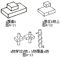 ④a物穿过b物,b物覆盖a物,也有b物不完全覆盖a物(如图4—13)。这种关系正如人身上的骨肉关系。肌肉覆盖骨头,而骨头又穿过肌肉。