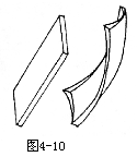 体量关系实际上是随着塑像的深入,也在自然而然地完善。 左右关系和上下关系学生容易掌握,但前后关系就比较难,不过前后关系在侧面就显得明显了,但有时在侧面调整以后,又可能会影响正面左右脸的对称关系,所以要求学生从多角度观察,反复调试,而不是老在一个面做。 在做雕塑的过程中,由于形体是复杂的,变化的,各个大小不一的体积之间的衔接关系也特别复杂和难以表现。因此,我们在这里概括四种关系。这四种关系正是形体与形体、骨与骨、骨与肉、肌肉与肌肉之间的关系,且这四种关系不是单独存在而是相互转换并存的。 ①这是单个形体(如图4—10)的变化,可以看出它产生了扭曲,而这种扭曲使形体产生了由阴向阳或由阳向阴的转换,所以请同学们注意,人头像不像积木或是模型那样死板,而应将其视作一种有机体,这种有机体变化的过程是类似于生命生长的过程,从而使雕塑更具生命力。在头像中有许多这种情形,如头像中眼眶的变化。 ②这是两个形体之间的变化(如图4—11),一个物体放在另一个物体上,并覆盖了另一个物体的一部分,这两个物体可以是方体、圆体或是异形体。如在头像中鼻体和颜面的关系。 ③这是两个形体的关系(如图4—12),一个物体悬在另一物体上,这种形式在人头上几乎没有,但却有时经常出现在我们的雕塑上。那是由于结构松散、形体与形体间的空间位置关系不准确而拉得过大。