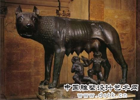 青铜,高85厘米,约创作于公元前500年,现收藏于意大利罗马市政博物馆。雕像取材于罗马建城的传说:著名的特洛伊战争结束后,特洛伊王子逃到意大利半岛,建立了阿尔巴城,世代相传;后来,一个名叫努米托耳的国王被其弟阿木留斯推翻,儿子被杀,但他的女儿为战神所爱,生下一对双胞胎罗穆路和瑞穆斯,却被阿木留斯放入篮子中丢人台伯河;这对兄弟后来被一只母狼发现并收留抚养,不久,被牧人发现收养;他们长大以后,杀死仇人,救出外祖父,创建了新的城市;后来罗穆路杀死了瑞穆斯,并以自己的名字命名这座城市为罗马。这尊雕像所刻划的就是曾经哺育了罗马创始人的母狼的形象。这尊雕像是埃特鲁斯坎人的艺术杰作,对罗马人来说,它还具有纪念碑意义,人们把它作为民族发源的始祖而给以顶礼膜拜。现在,雕像《母狼》已成为了罗马市的象征。